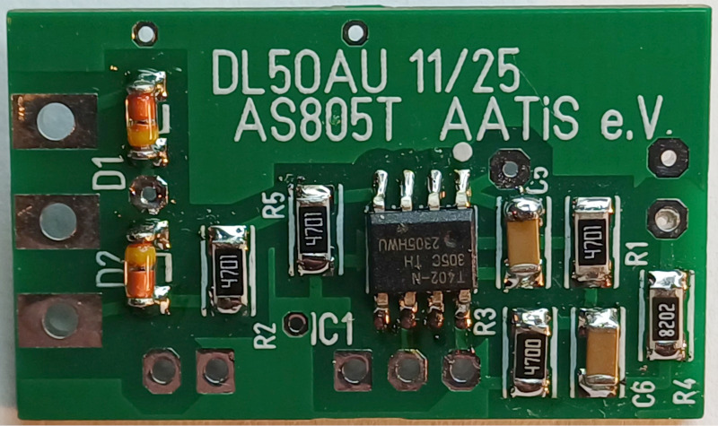 Zusatz für AS805 und EliSE Photonic-Communicator. Kleine SMD-Leiterplatte mit Schalter zur Auswahl von Dauerton (ca. 625Hz) oder Tonfolge mit ansteigender Frequenz. Der Dauerton hilft beim genauen Ausrichten der Gegenstation. Die Tonfolge dient zur Identifizierung der Gegenstation.