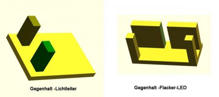 Dazu werden noch drei kleine Konstruktionsteile für die Aufnahme der Flacker-LEDs und Lichtleiterbündel benötigt, die auf dem 3D-Drucker hergestellt werden können (AS405-F)