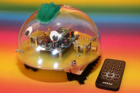 Der ferngesteuerte Bürstenroboter AS104 verfügt über Beleuchtung, Blinker, Blitzlicht und Hupe. Er kann über eine dem Bausatz beiliegende Infrarotfernbedienung gelenkt werden. Ein optional nachrüstbares Bluetooth-Modul ermöglicht die Steuerung mittels Android App. Nur bedrahtete Bauelemente (außer Blitzlicht und optionales Bluetooth-Modul). Infrarotfernbedienung, Motoren und Batteriehalter liegen dem Bausatz bei, die Mechanik muss jedoch selbst gefertigt, kann also individuell gestaltet werden